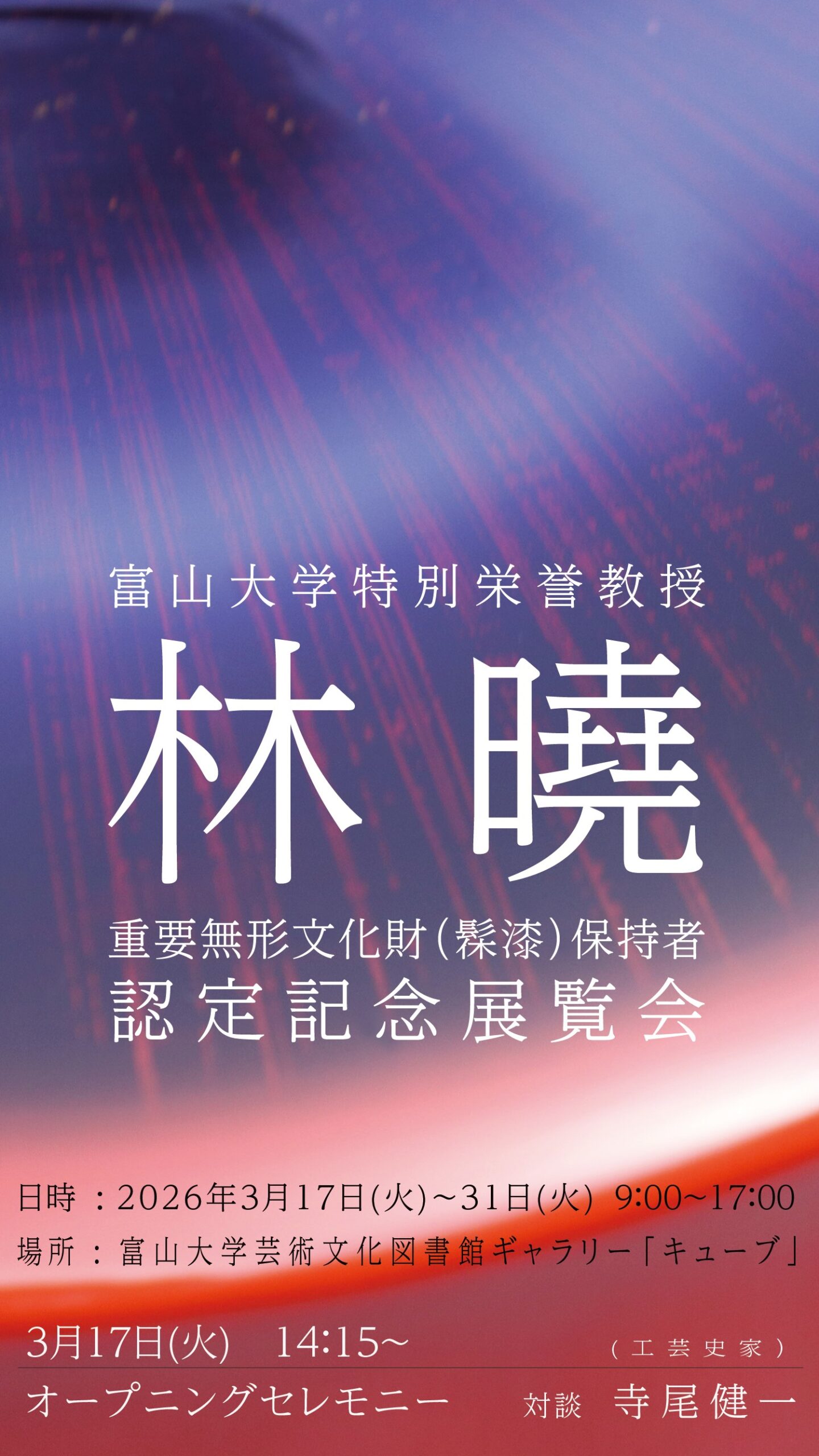 富山大学特別栄誉教授林曉重要無形文化財(髹漆)保持者認定記念展覧会を開催します。