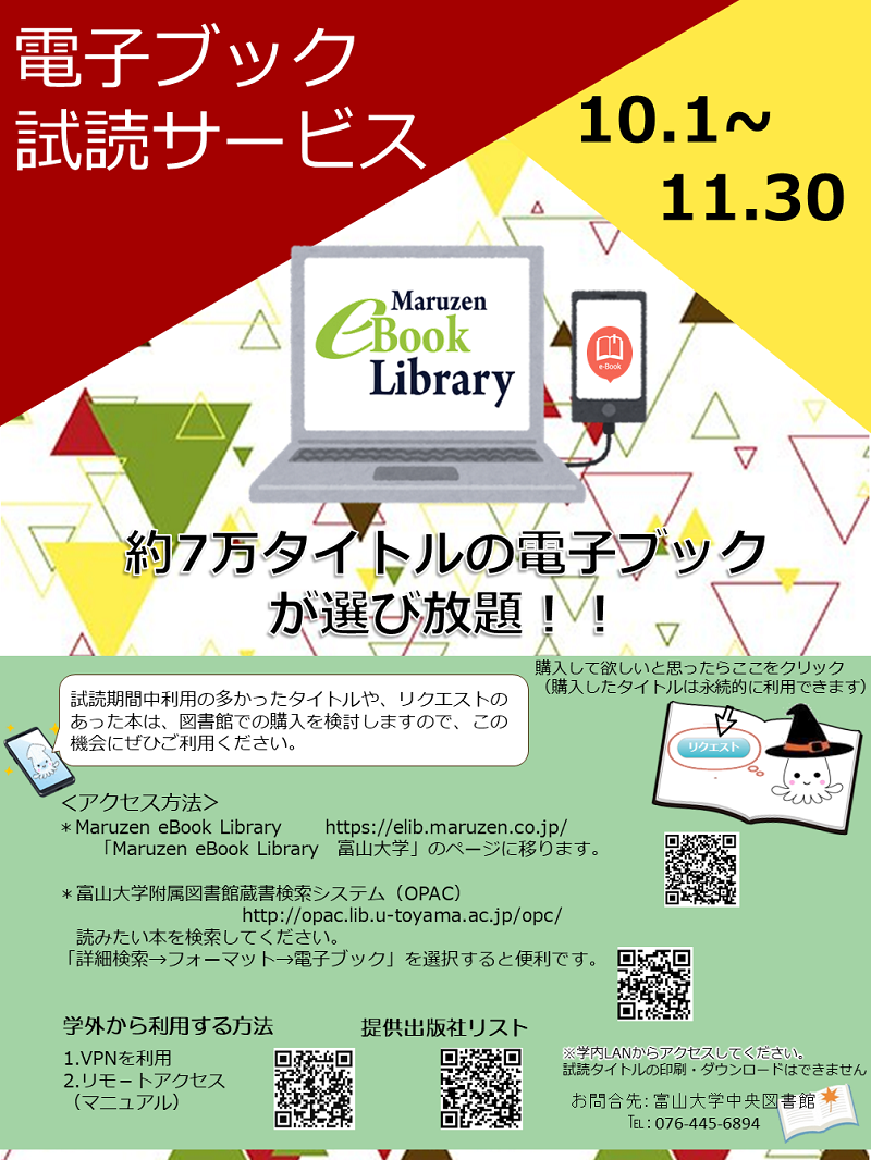 提供出版社リスト http://www.lib.u-toyama.ac.jp/chuo/pdf/eBookLibralyList.pdf