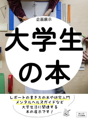企画展示「大学生の本」開催中です! 中央図書館 1階カウンター横の企画展示コーナーにて企画展示「大学生の本」を開催しています。 レポートの書き方に関する本や、研究入門書、メンタルヘルスの本など、いろんな分野から大学生活に関する本を集めて展示しています。すべて貸出可能です。ぜひ手に取ってみてください。