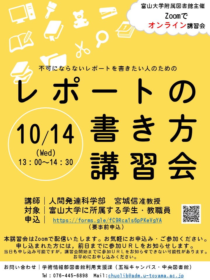 いつも春に行っていた「レポートの書き方講習会」を、今年は秋にオンライン形式で開催します!