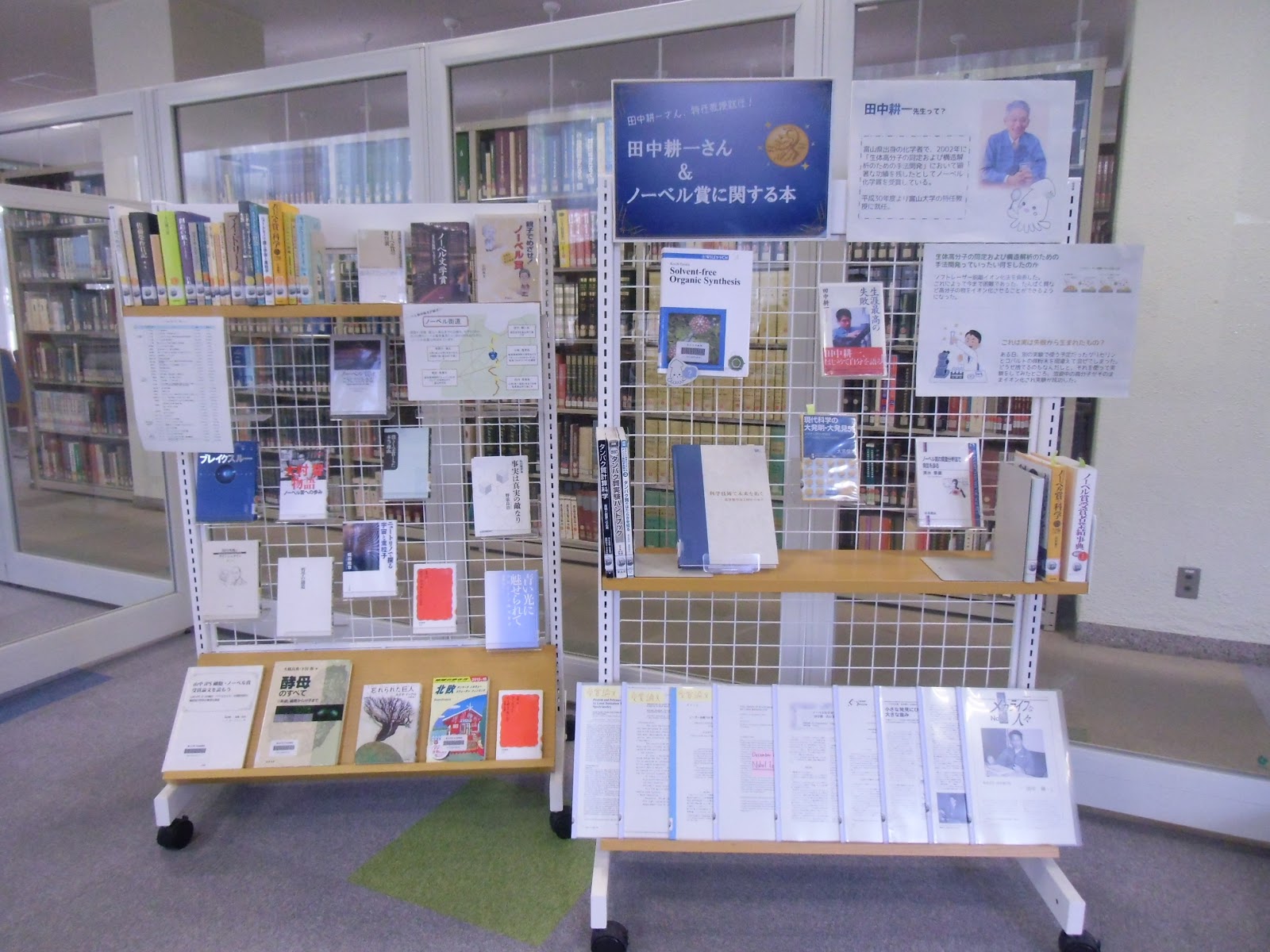 企画展示「田中耕一先生&ノーベル賞に関する本」開催中です 中央図書館 平成30年度より富山大学の特任教授に就任されました、田中耕一先生に関する本と、田中先生が2002年に受賞されましたノーベル賞に関する本を展示します。展示場所は、中央図書館1階の新聞コーナー手前です。皆様、どうぞご覧いただき、おもしろそうな本があれば、借りてじっくり読んでみてください!
