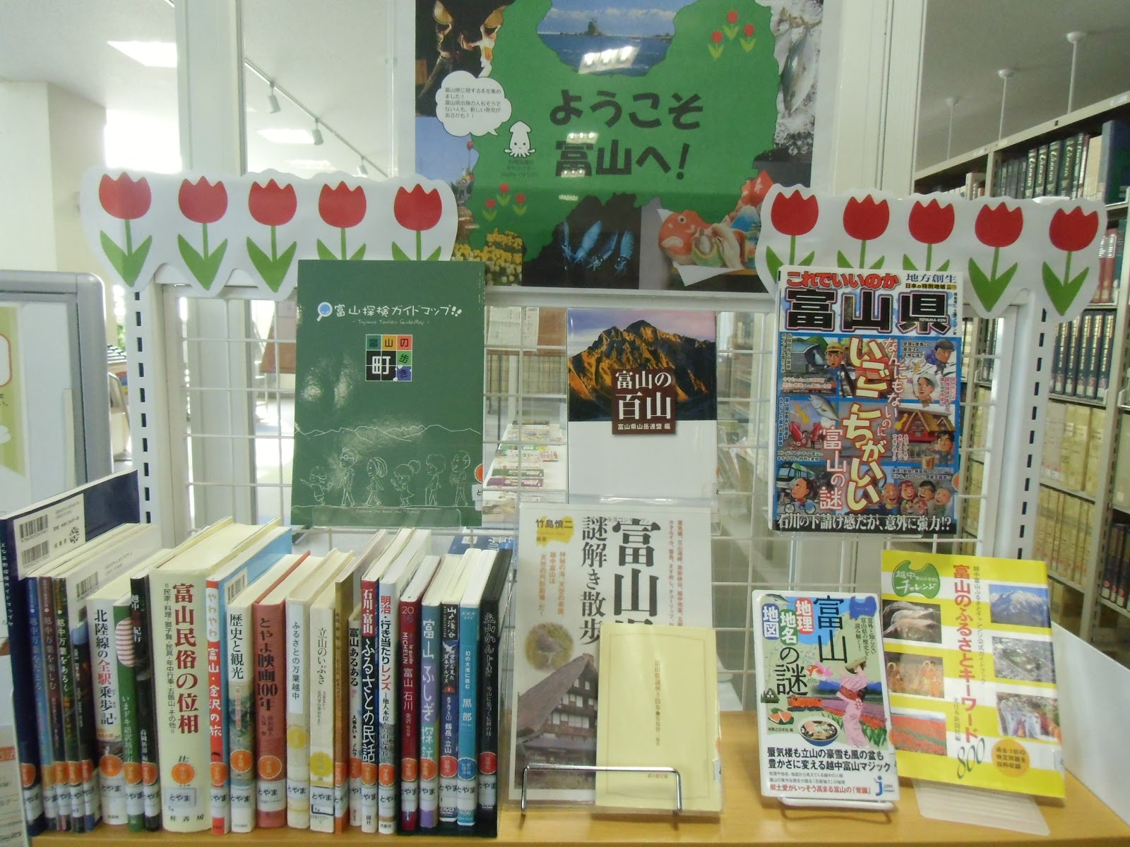 富山での新生活や、充実したキャンパスライフを送るために役立つ本が展示してあります。