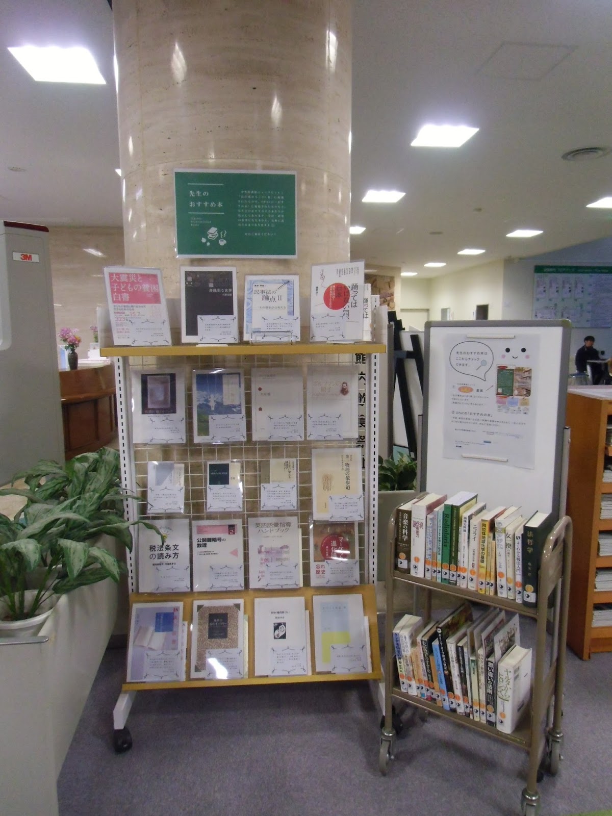 企画展示「先生のおすすめ本」開催中です! 中央図書館 先生方が,中央図書館ニュースLiLiで紹介された本や,OPACの「おすすめの本」に投稿されたものなどを展示をしています。1階企画展示コーナーにて開催中です。研究の参考になるものから,気軽に読めるものまでそろっています。ぜひご利用ください^^ 先生のコメントと一緒に展示してあります。