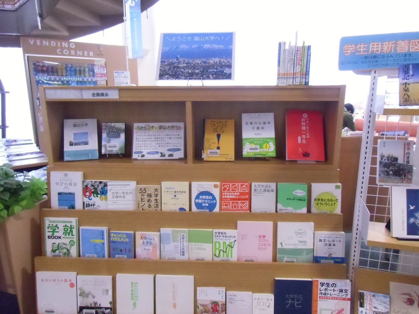 螺旋階段側の「ようこそ富山大学へ!」では、レポートの書き方や