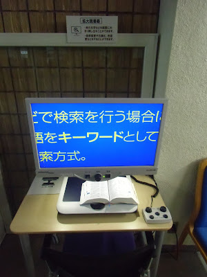 拡大読書器を設置しました 中央図書館 中央図書館1階の閲覧席隅に拡大読書器を設置しましたので、どうぞご利用ください。 本の文字などを画面に大きく映し出すことができます。 倍率変更や白黒化、色変更などをすることができます。