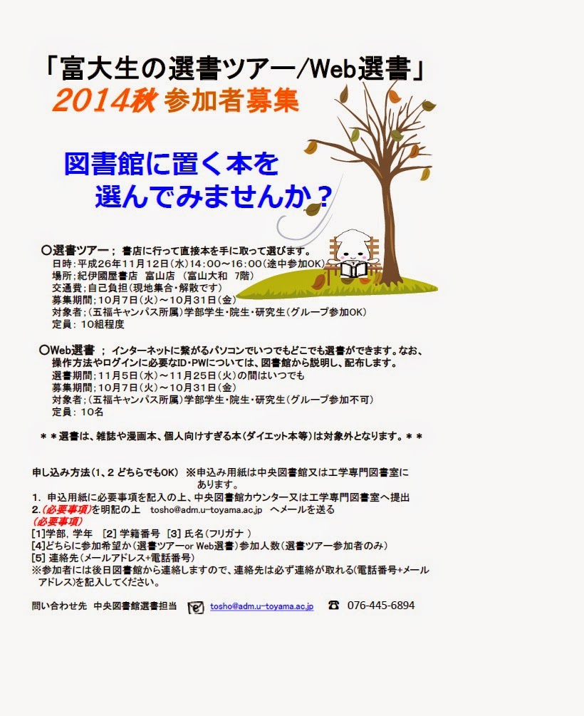 【終了】 (お知らせ)富大生の選書ツアー/Web選書参加者募集