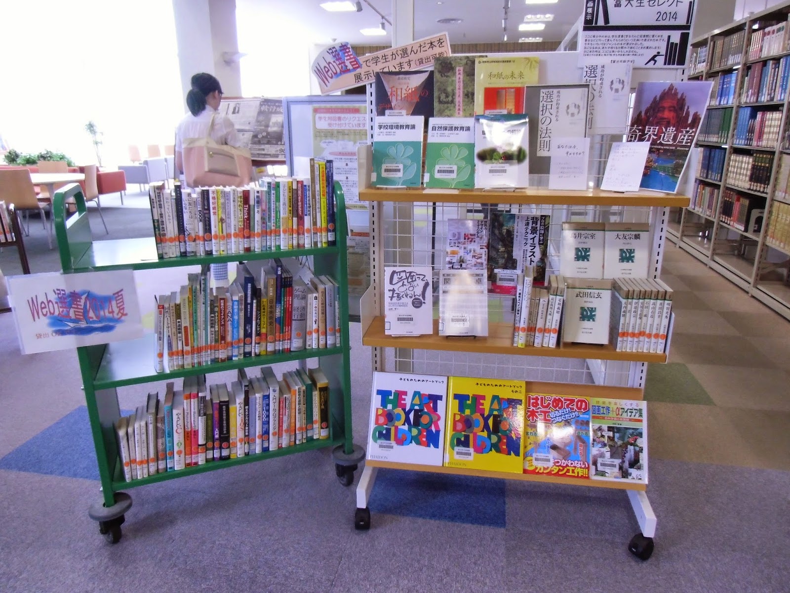 【終了】『Web選書&選書ツアー』 図書展示中!! 中央図書館 この展示は終了しました。——————————————————————————————– 『Web選書&選書ツアー』 図書展示中!! 先月、実施いたしました学生によるWeb選書と選書ツアーで選 ばられた図書をリフレッシュ・コミニュケーションゾーン入口に展示 しています。 貸出OKです。夏休みのお土産にどうぞ…..