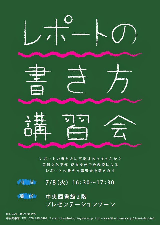 中央図書館では、このたび、芸術文化学部の伊東多佳子先生による「レポートの書き方講習会」を開催します!