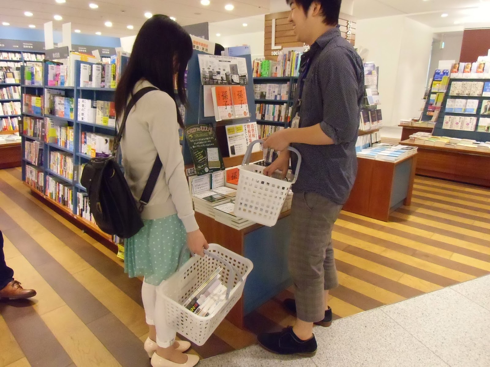 さて、開催日当日、開始時間に向けて続々と書店に集まる参加者の皆さん。来た順に、職員から本の選び方などの説明を受けて店内へ散らばります。