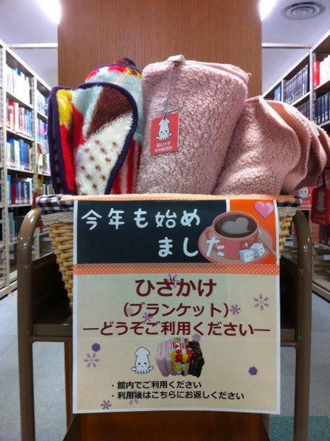 【終了】ブランケット貸出サービス開始! 中央図書館 本日よりひざかけ(ブランケット)貸出サービスを開始します。 カウンター近くに設置しましたので、ご自由にお使いください。 場所:カウンター横枚数:6枚 利用方法:ご自由にどうぞ 館内での利用限定です 利用後はもとの場所にお戻しください