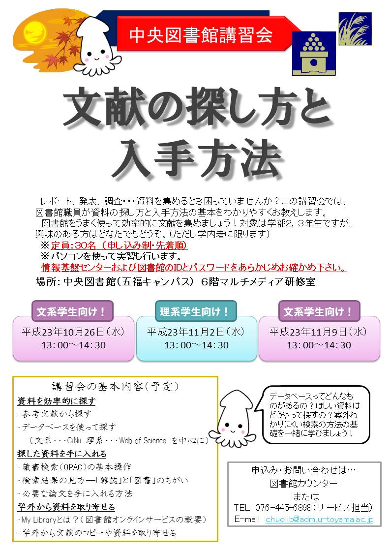 - 平成23年10月26日(水) 13:00~14:30 文系学生向け!